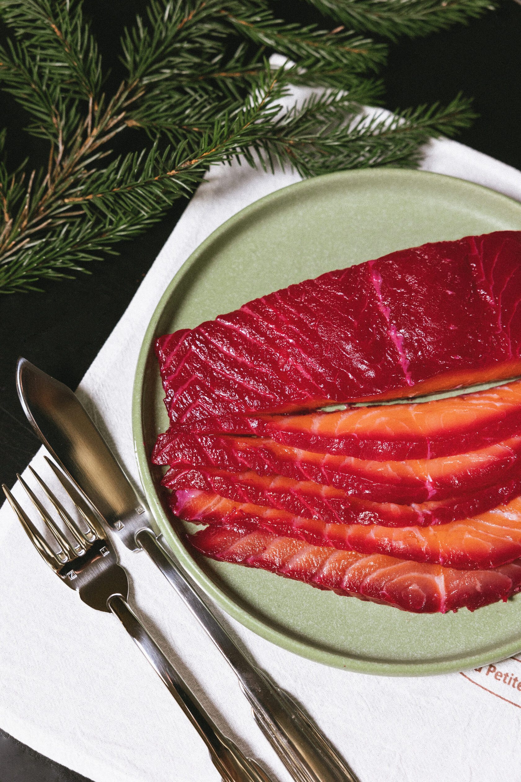 ЛОСОСЬ СЛАБОЙ СОЛИ В СВЁКЛЕ (ГРАВЛАКС)